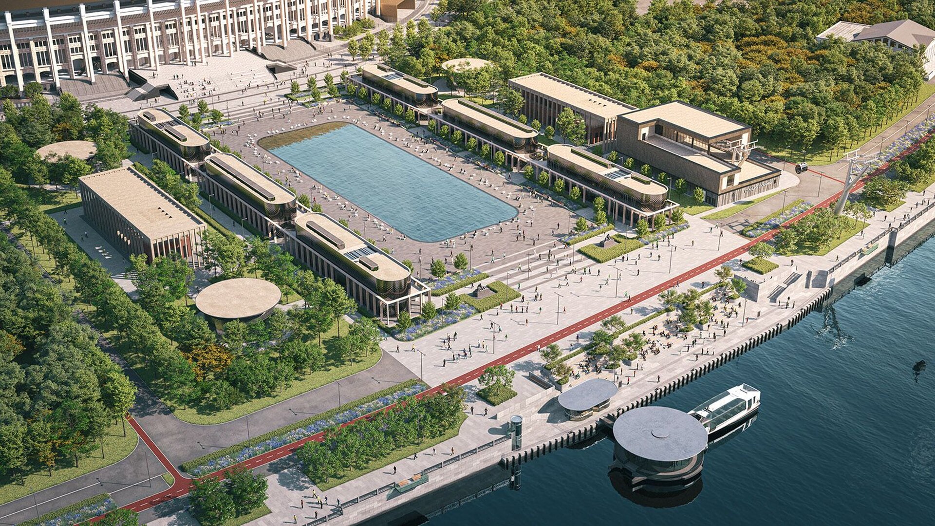 Интересно, что два из этих павильонов будут работать в двух режимах: зимой они станут частью инфраструктуры катка (здесь разместят прокат коньков, камеры хранения и раздевалки), а летом превратятся в площадки для мероприятий. Остальные шесть павильонов займут кафе и рестораны — отличная новость для тех, кто любит совмещать спорт с приятным отдыхом.