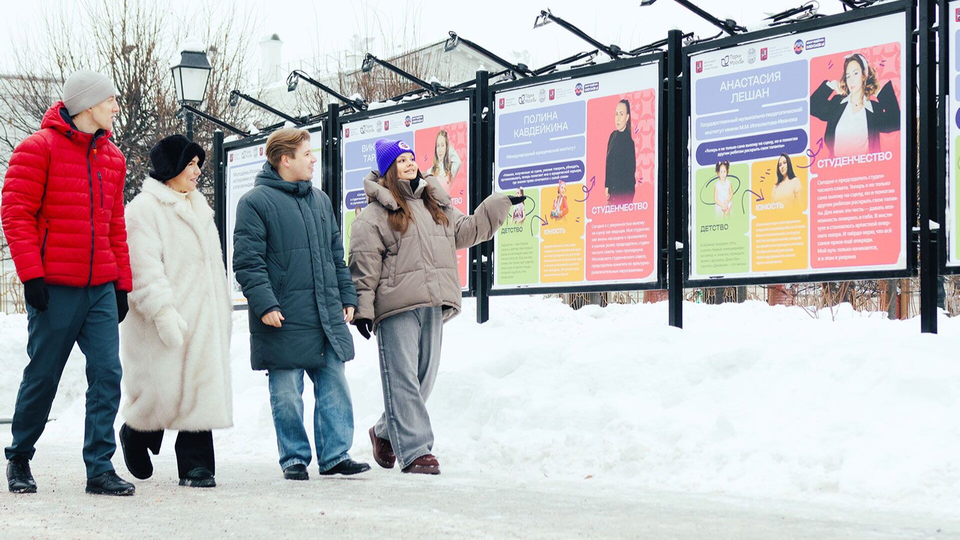 До 31 января в саду «Эрмитаж» можно заглянуть на фотовыставку, посвящённую лидерам московского студенчества — председателям студсоветов и активистам, которые совмещают учёбу с наукой, творчеством и спортом.