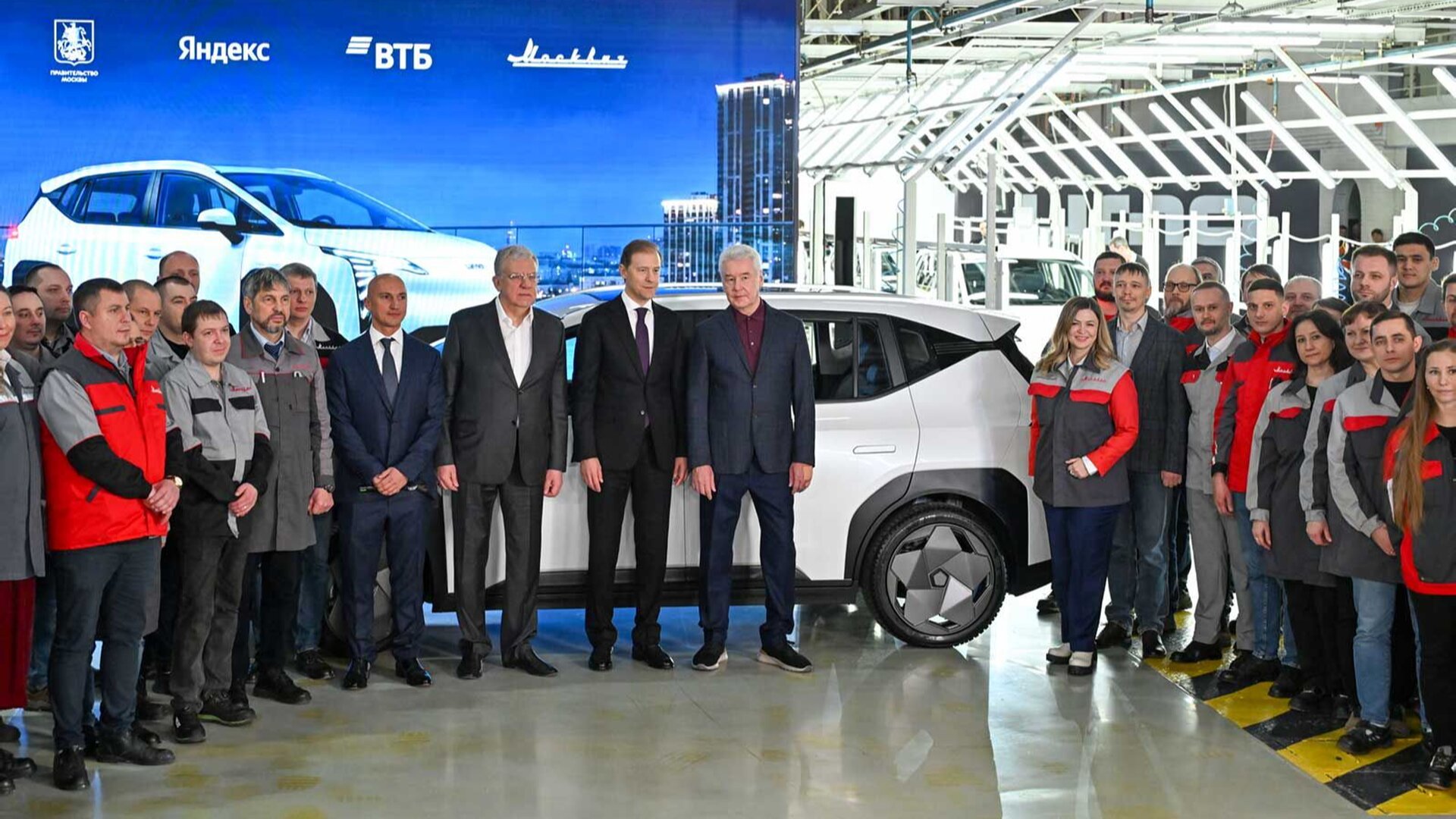 На заводе «Москвич» открыли производство новой модели электромобиля — UMO. В церемонии запуска участвовали первый вице-премьер Денис Мантуров, мэр Москвы Сергей Собянин и советник «Яндекса» Алексей Кудрин.