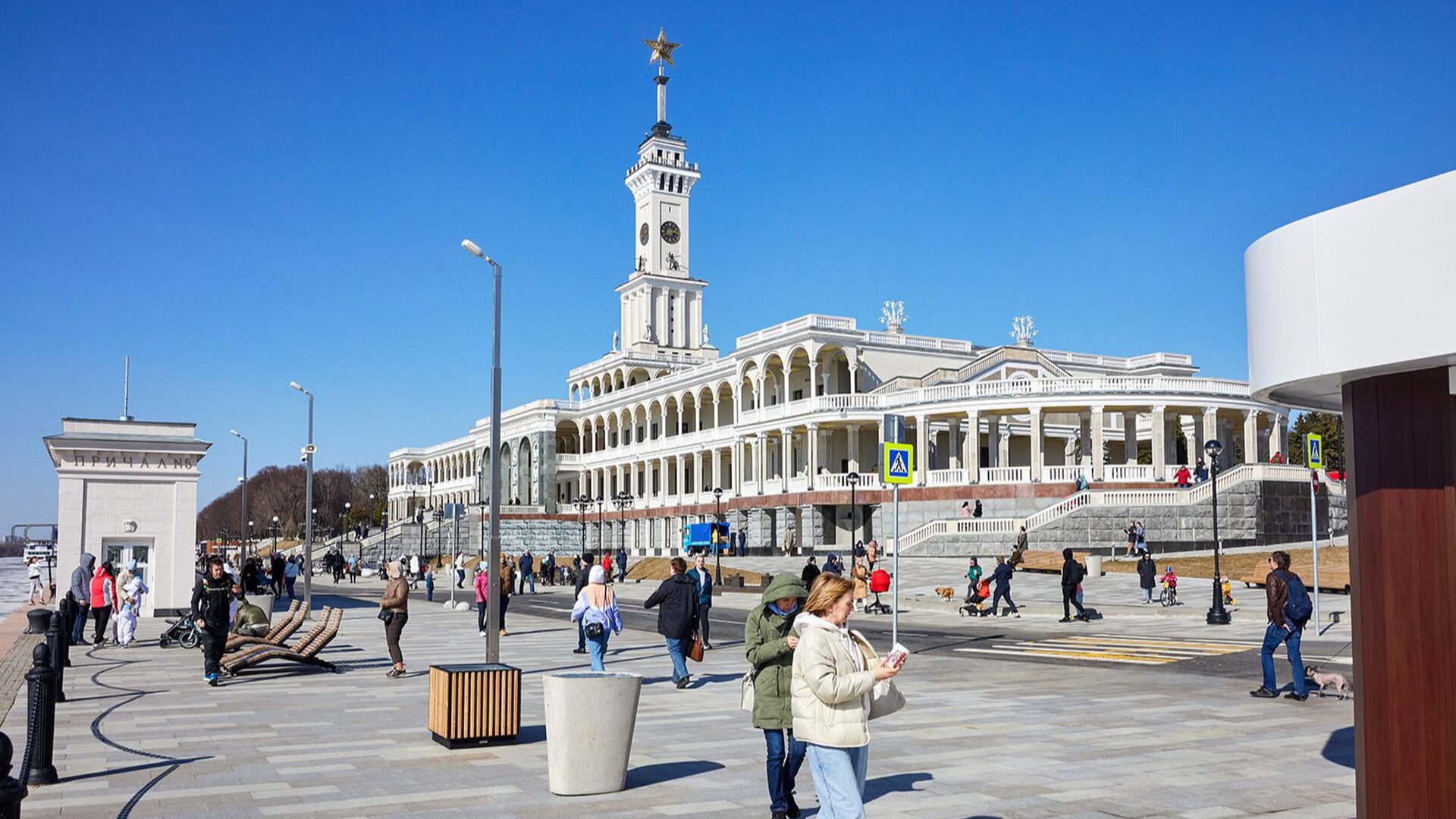 - Сосчитать цветные медальоны на фасаде Северного речного вокзала.