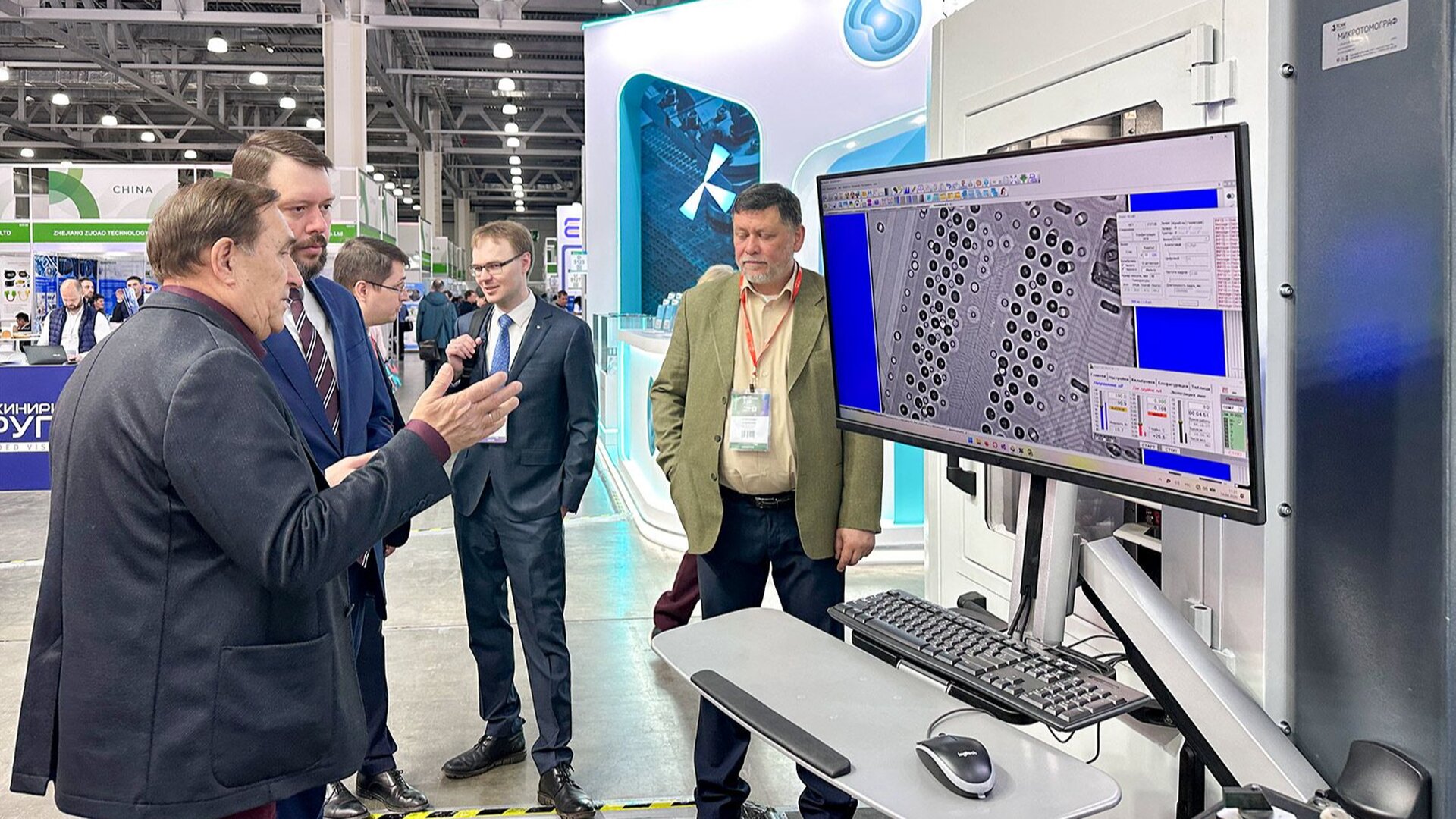 Среди экспонатов — уникальный промышленный 3D-томограф от компании «Диагностика-М». Устройство позволяет заглянуть внутрь микроэлектроники с детализацией до пяти микрон и создавать трёхмерные модели внутренних структур, включая процессоры. Разработка полностью сделана на российской компонентной базе. Оборудование компании уже работает в более чем 100 аэропортах страны, в Московском метро, на объектах «Почты России», «Росатома» и РЖД.