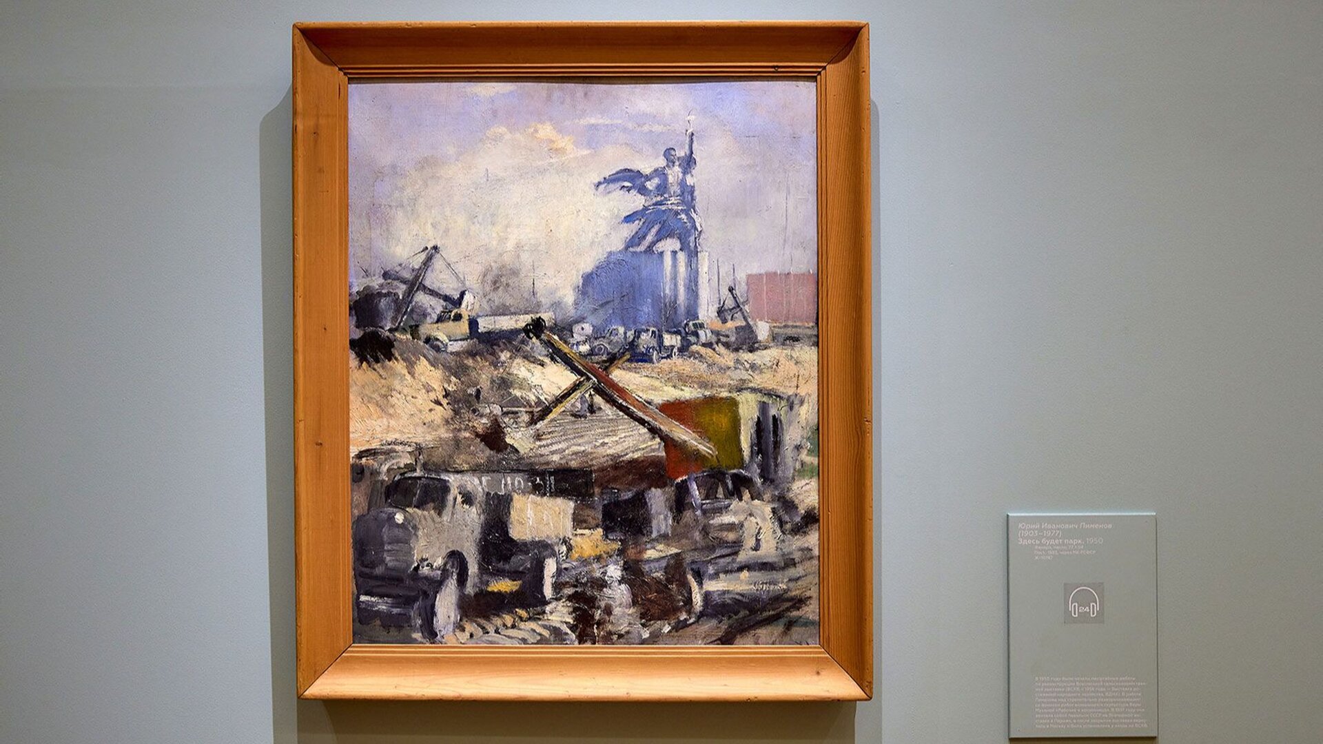 Юрий Пименов в работе «Здесь будет парк» (1950) запечатлел послевоенное преображение ВДНХ (тогда ещё ВСХВ). На фоне строительства возвышается знаменитый монумент «Рабочий и колхозница» Веры Мухиной. Картина удивительно перекликается с современными преобразованиями Москвы, где промышленные территории становятся культурными центрами.